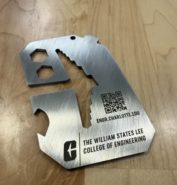 This project involved the production of approximately 80 custom multitools. Each tool was cut from sheet material using the waterjet. After cutting, each tool was custom etched using the fiber laser cutter to add detailed markings and personalized elements. Finally, every piece was hand-sanded to smooth edges and refine the surface.